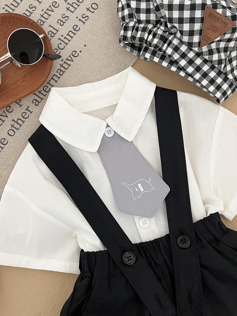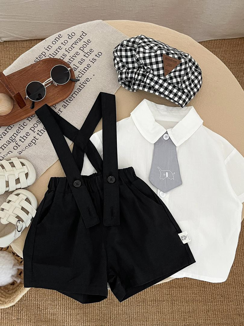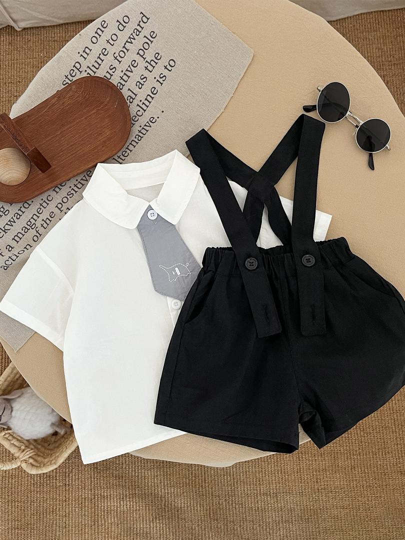 طقم أطفال أولاد رسمي (قميص بربطة عنق + شورت بفتحة حمالات)