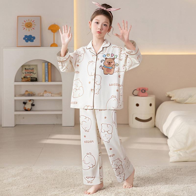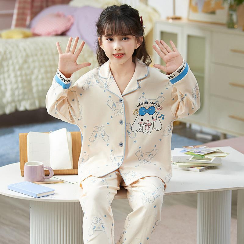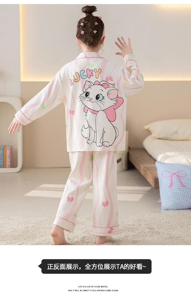 طقم أطفال بناتي – 100% قطن، بيجامة طويلة الأكمام ستايل أميرة، مناسبة للربيع والخريف، يمكن ارتداؤها كملابس منزلية أو خارجية (قميص بأزرار + بنطال).