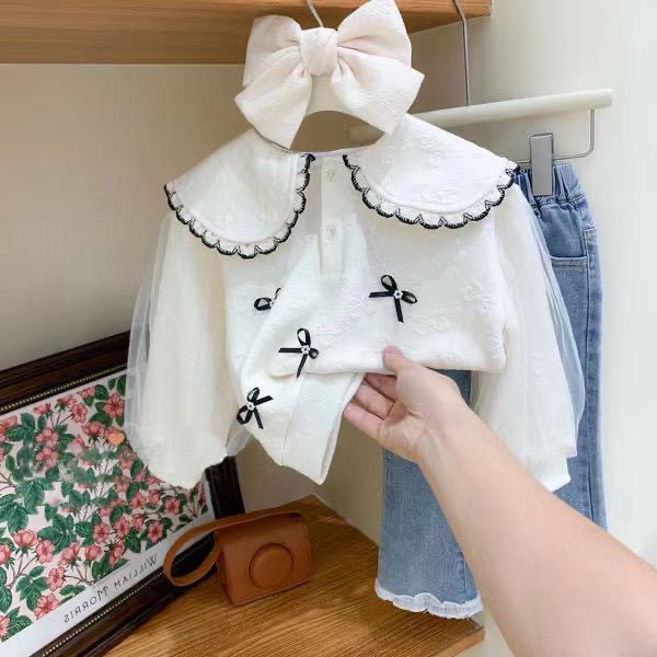 طقم أطفال قطعتين (بلوزة مطرزة + بنطلون جينز