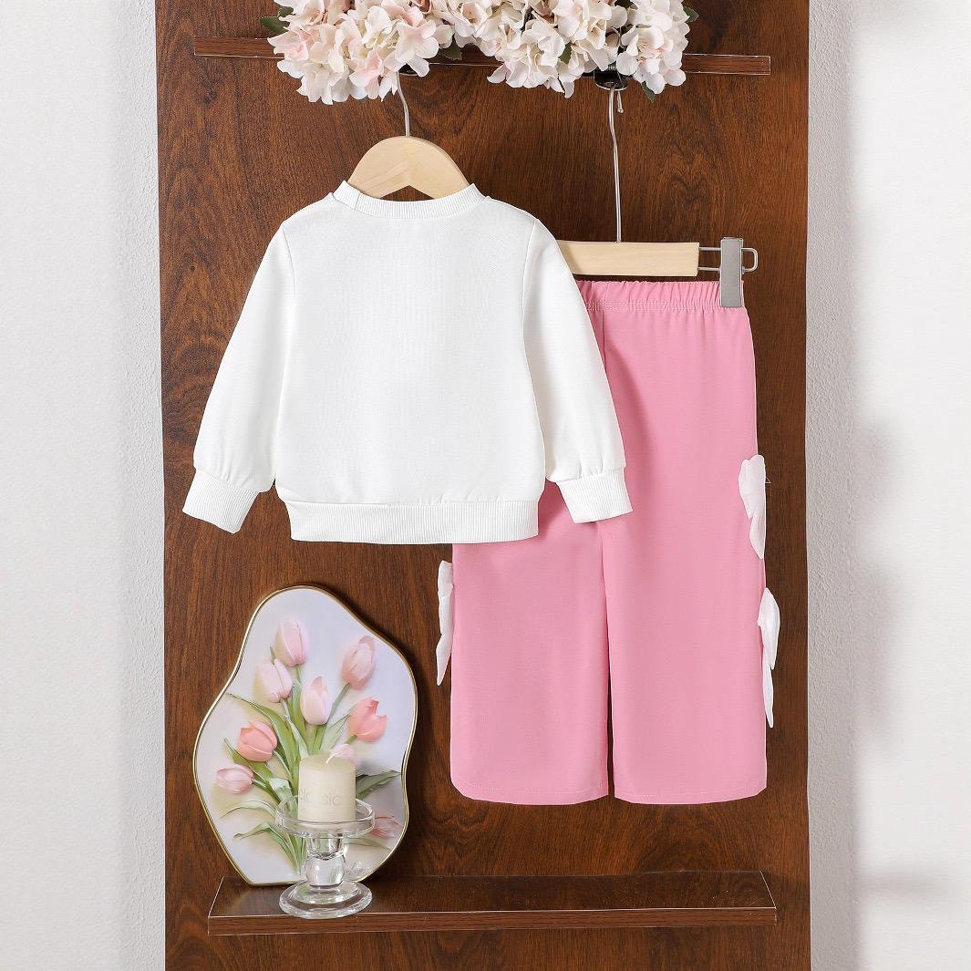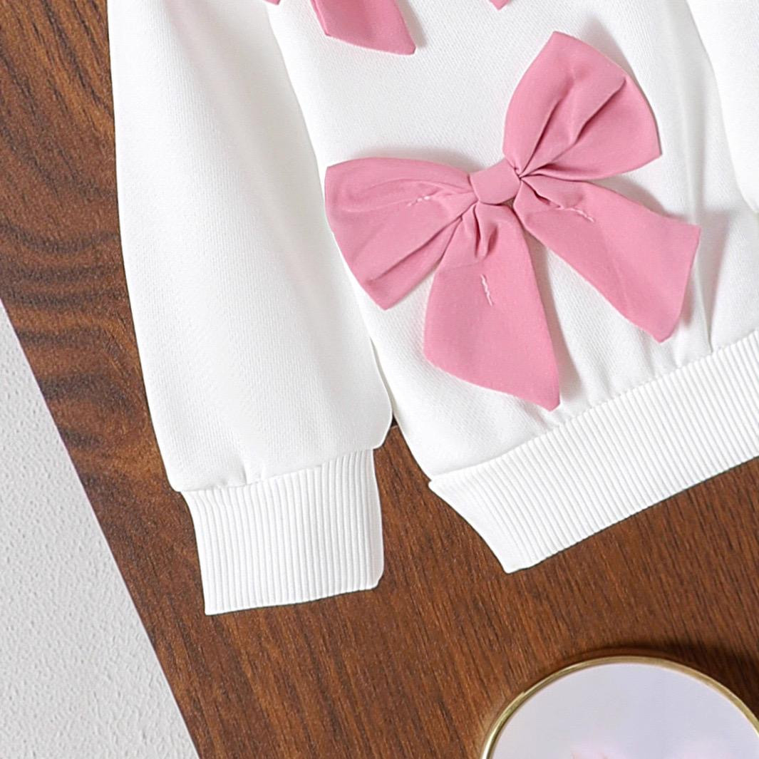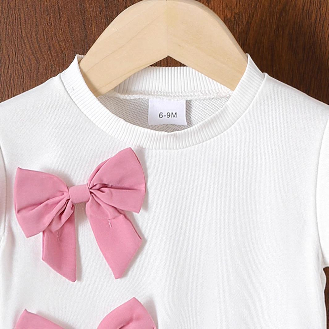 طقم أطفال قطني مزين بفيونكات – لون وردي