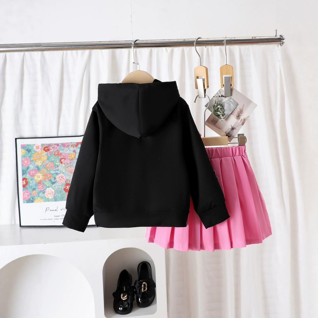 طقم أطفال شتوي باللون الأسود مع تنورة
