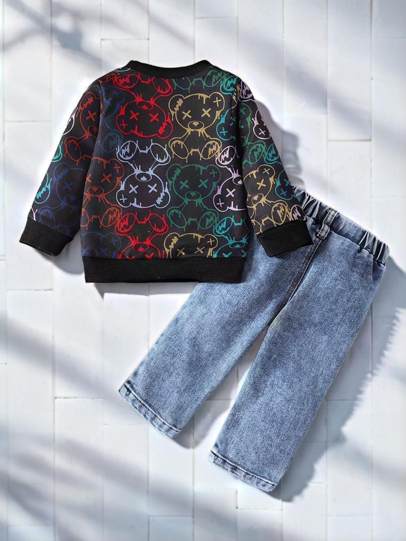 طقم أطفال شتوي بكنزة دب وبنطال جينز