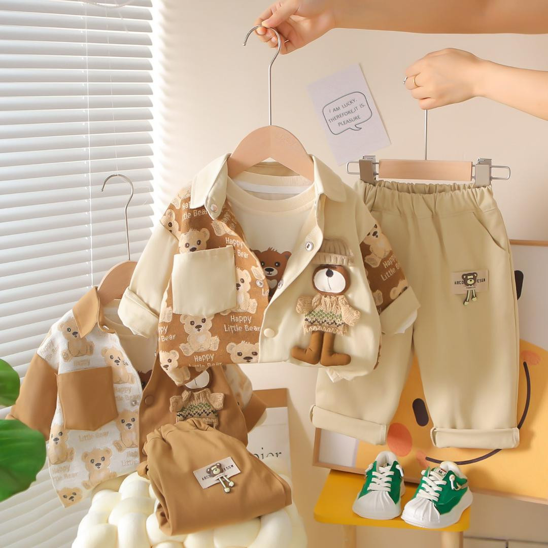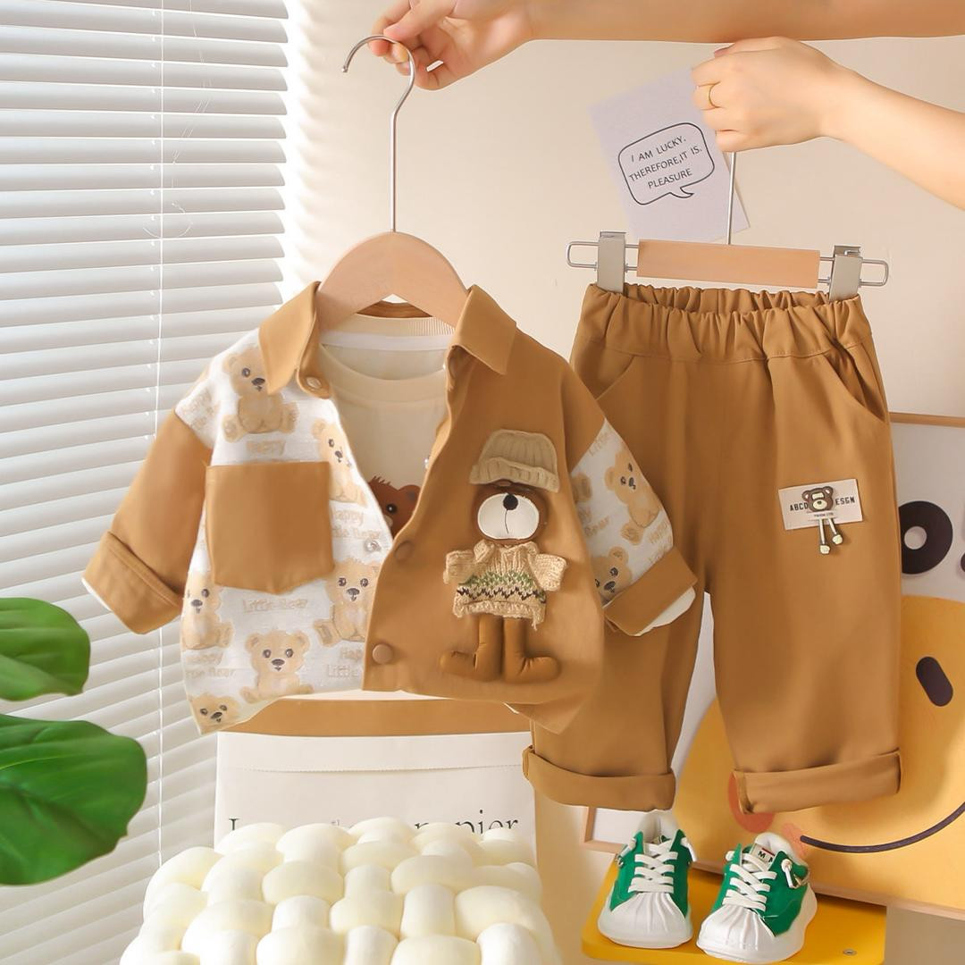 طقم أطفال شتوي/ربيعي (جاكيت حيوان كرتوني + تيشيرت + بنطلون – ثلاث قطع)