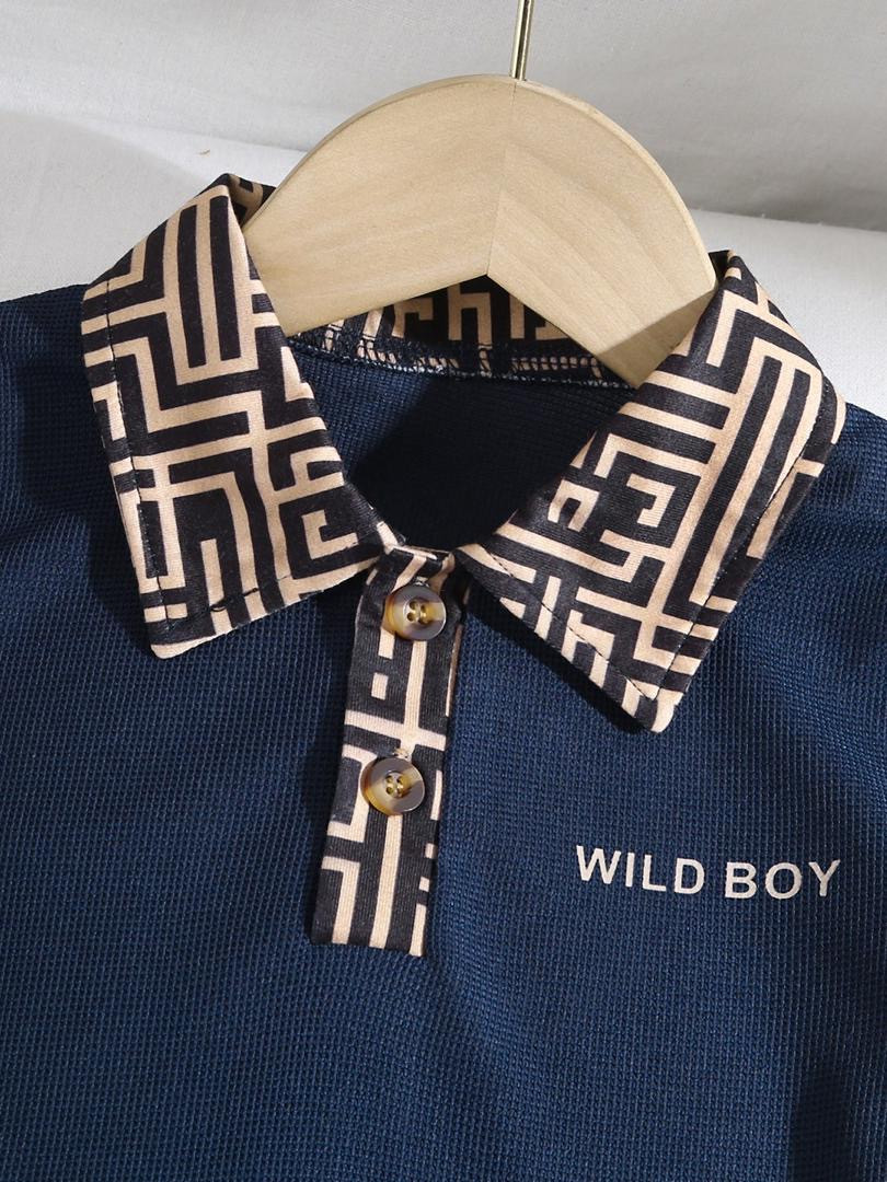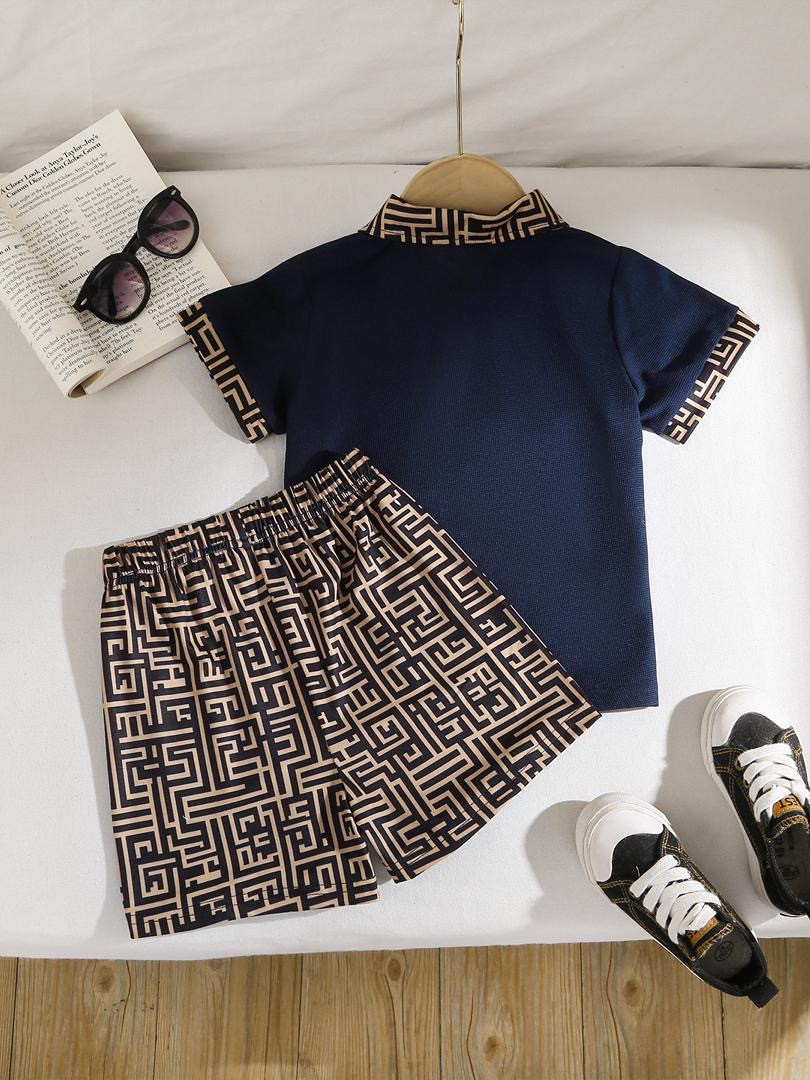 طقم أطفال صيفي كاجوال بلون أزرق داكن مع شورت