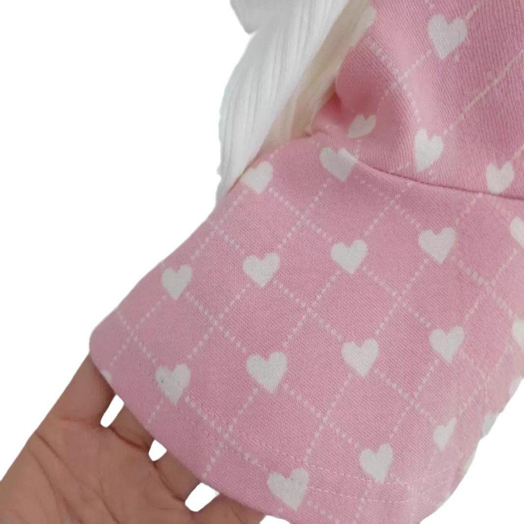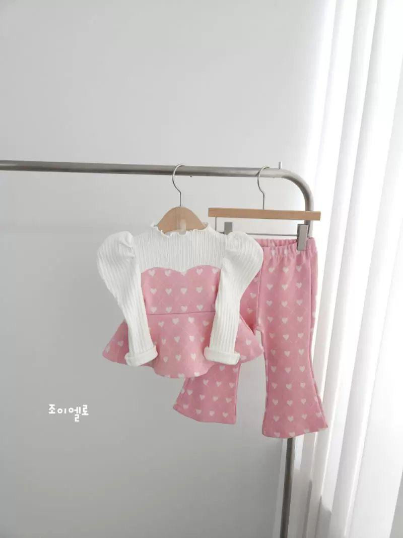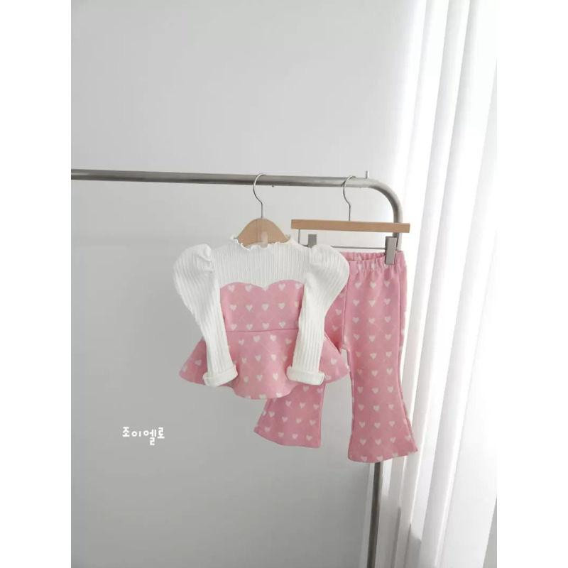 طقم بناتي خريفي/ربيعي – بليز مع بنطال بنقشة قلوب وأكمام منفوخة)
