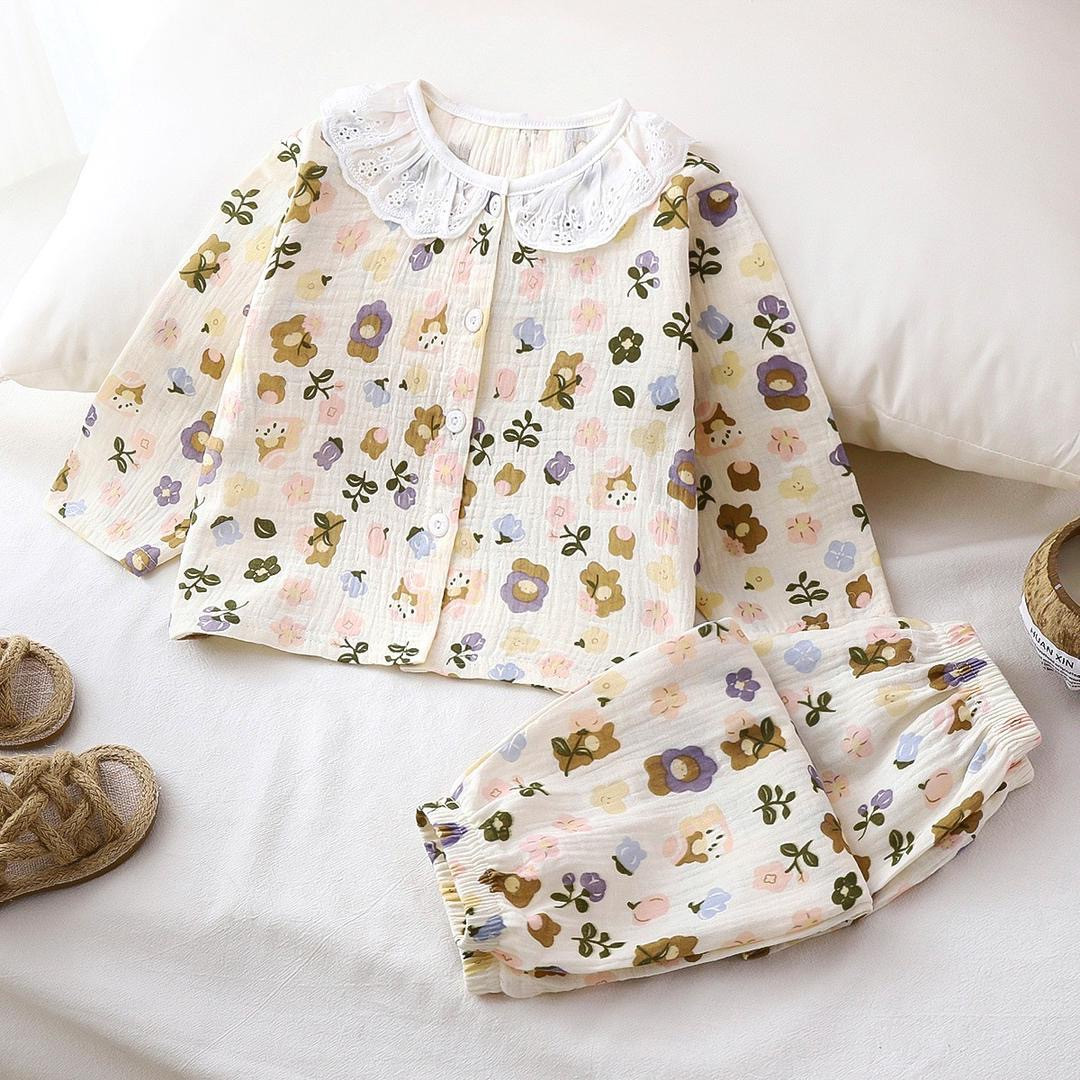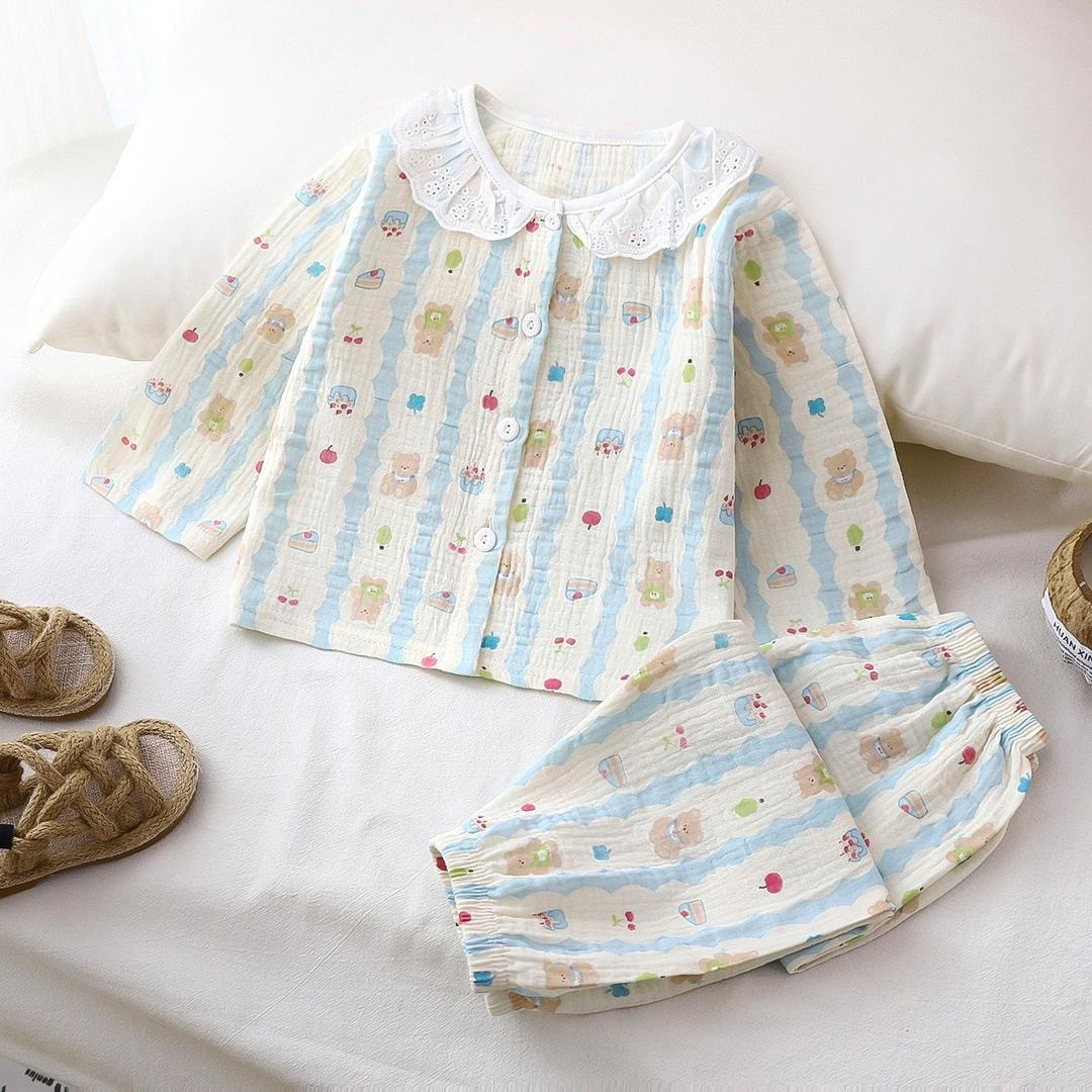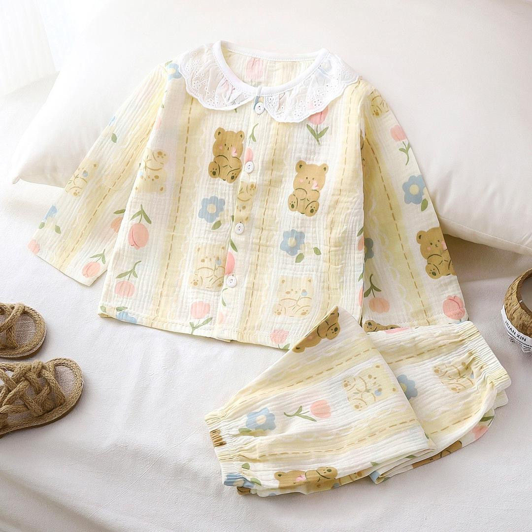 طقم بناتي قطن مريح بطبعة دب