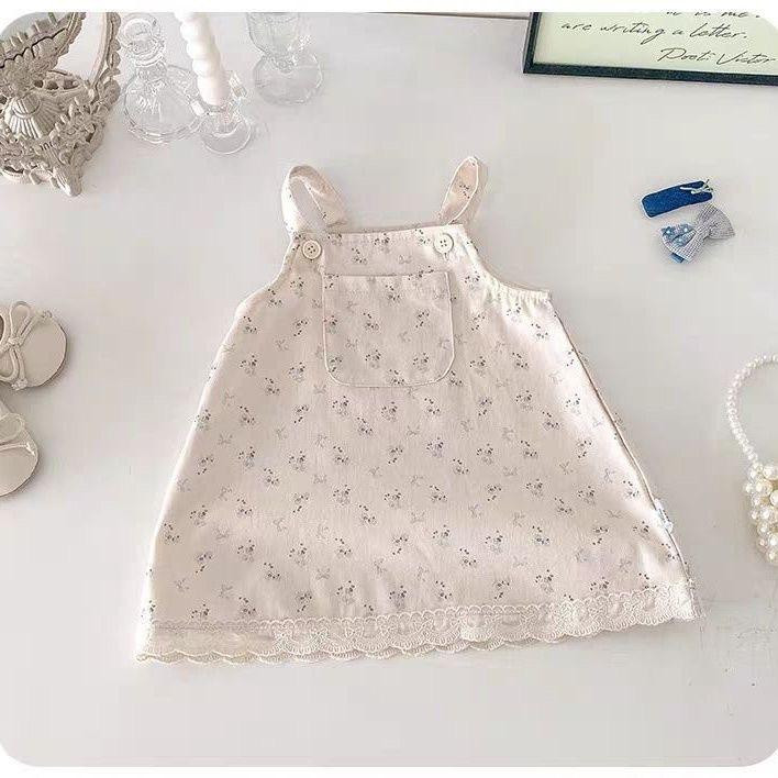 طقم بناتي لطيف، يتكوّن من فستان بحمالات بطبعة زهور صغيرة مع قميص ناعم