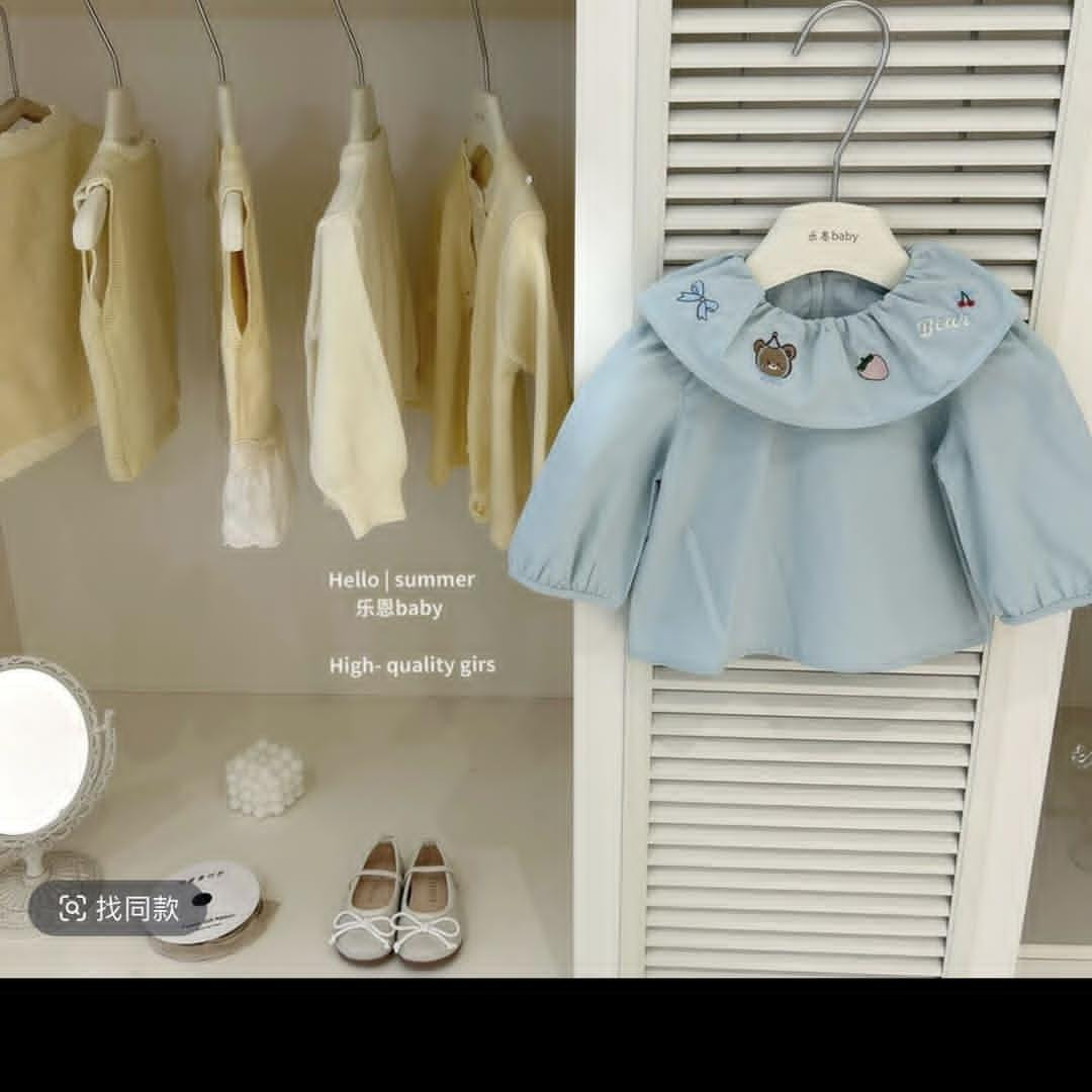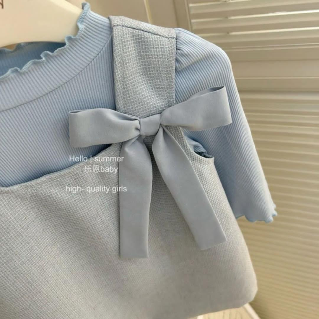 طقم بناتي مكوّن من قطعتين لفترة الخريف المبكر، يضم قميص داخلي بأكمام مطوية مع فستان بحمالات مزين بفيونكة بتصميم أنيق مستوحى من أسلوب شانيل الناعم