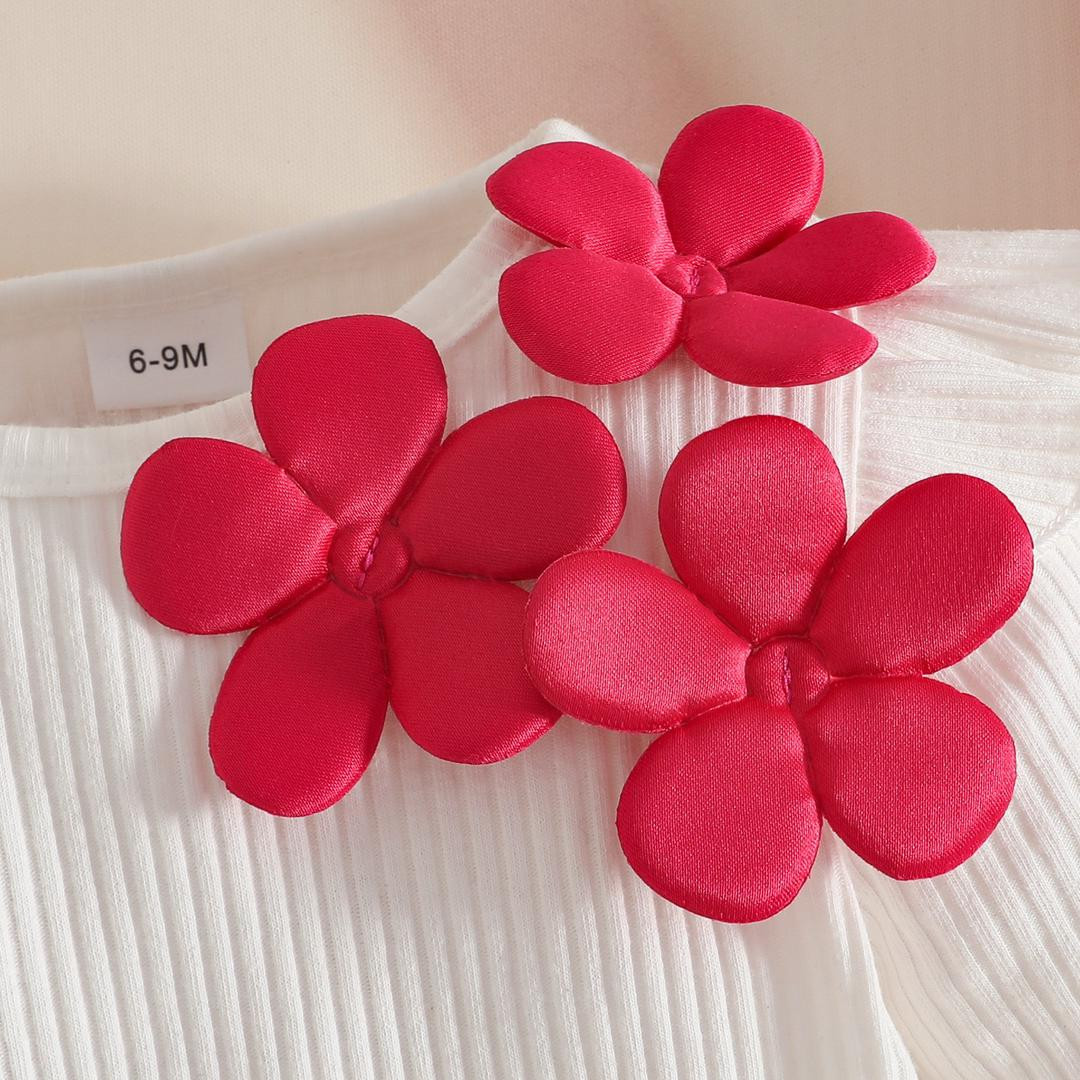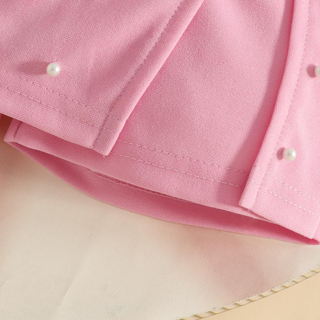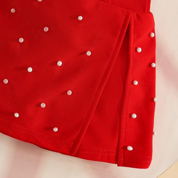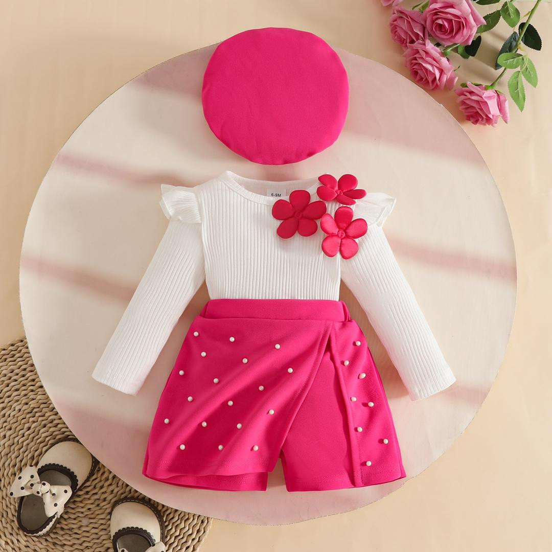 طقم بناتي شتوي(بلوزة طويلة الأكمام مزينة بزهور + تنورة مرصعة بالخرز + قبعة بيريه)