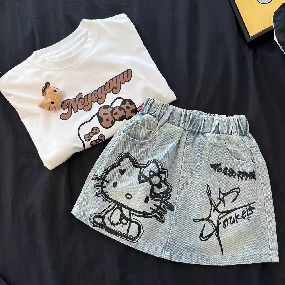 طقم للأطفال برسوم لولو كات مع تنورة