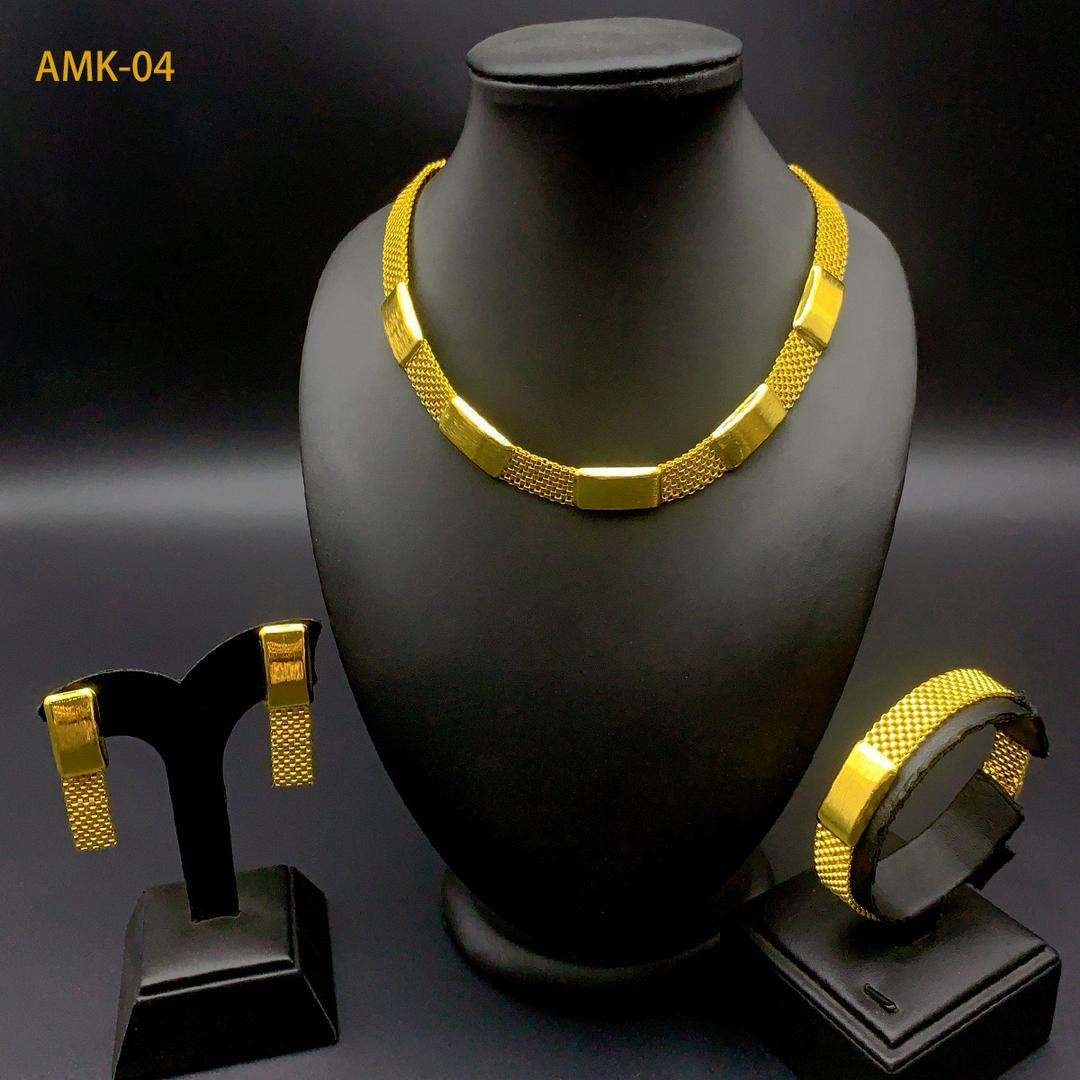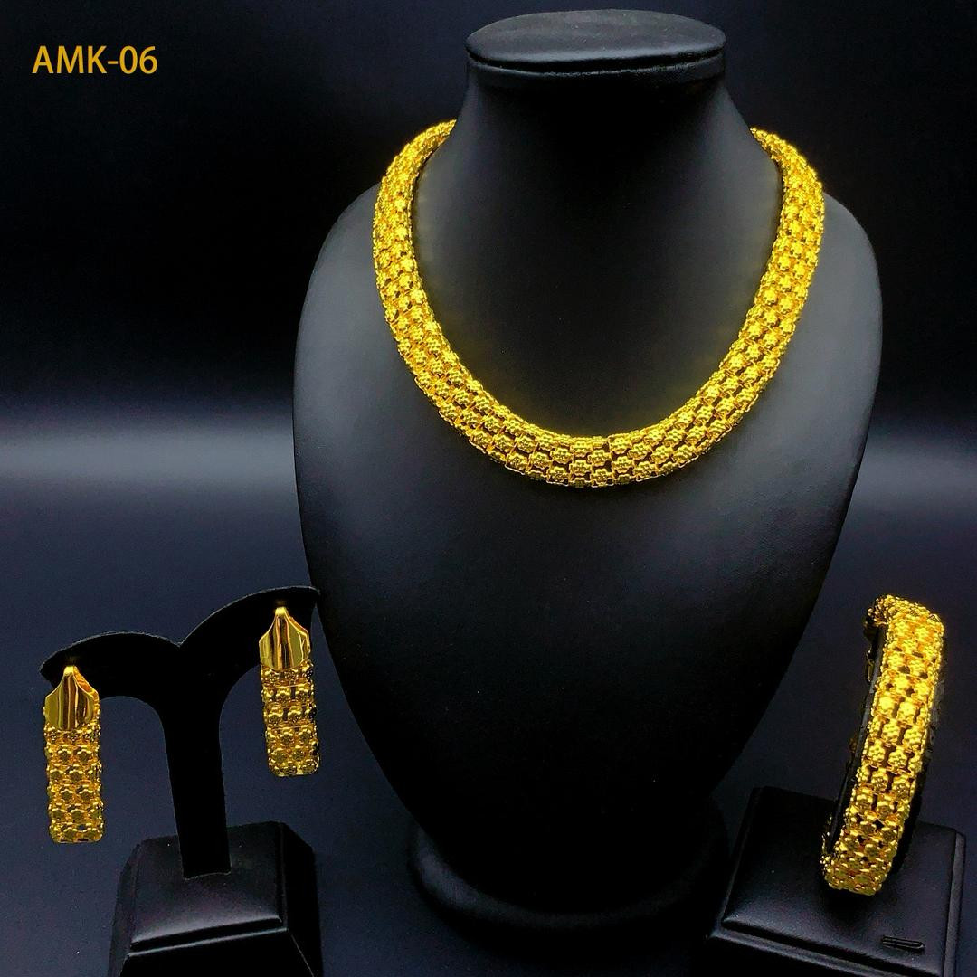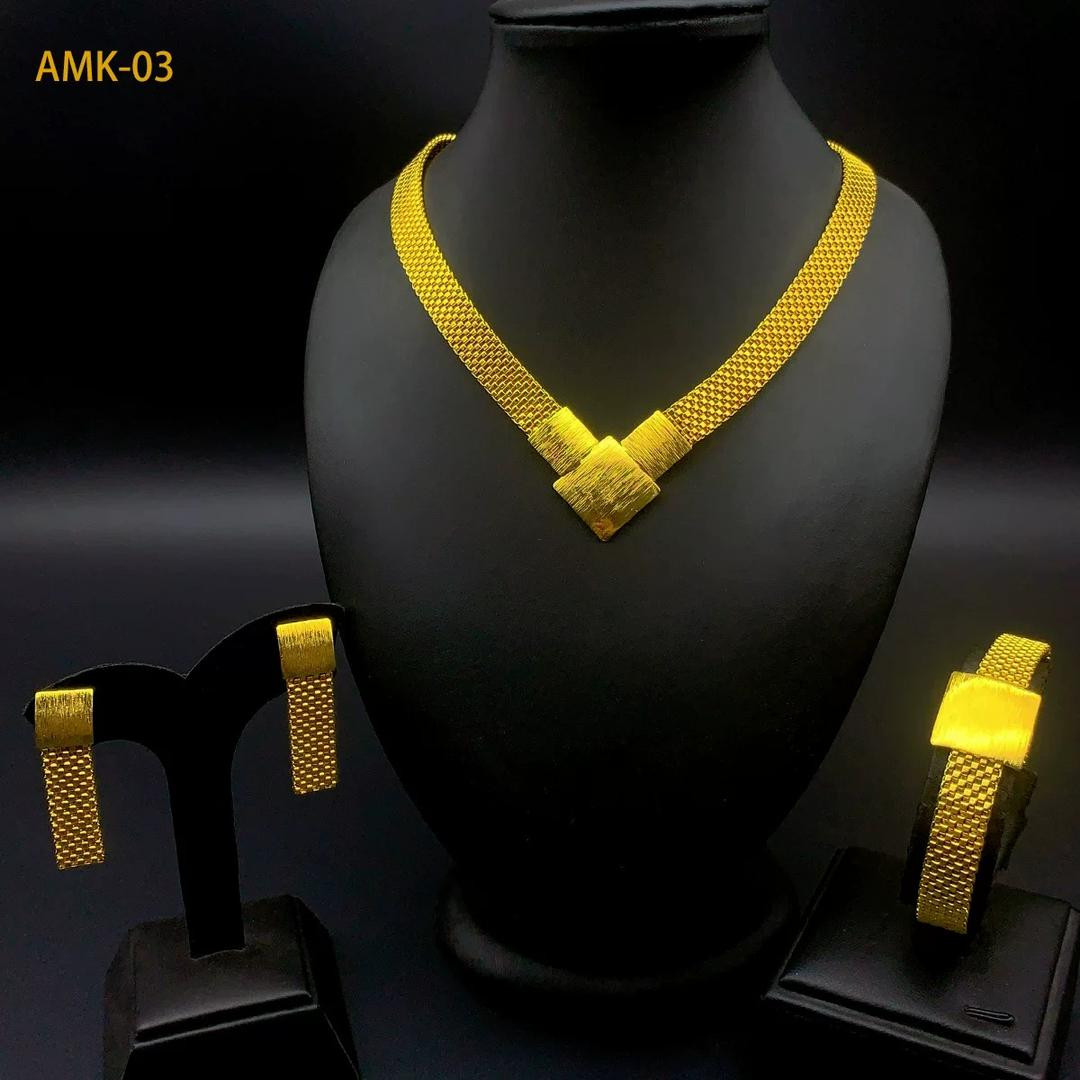 ? طقم مجوهرات فاخر بثلاث قطع بتصميم خليجي راقٍ مستوحى من مجوهرات دبي ✨ يحتوي على سلسلة رقبة ? + سوار يد ? + حلق ? مطلية بلون الذهب اللامع (شبه ذهب عيار 24) تصميم أنيق يناسب العرائس والمناسبات