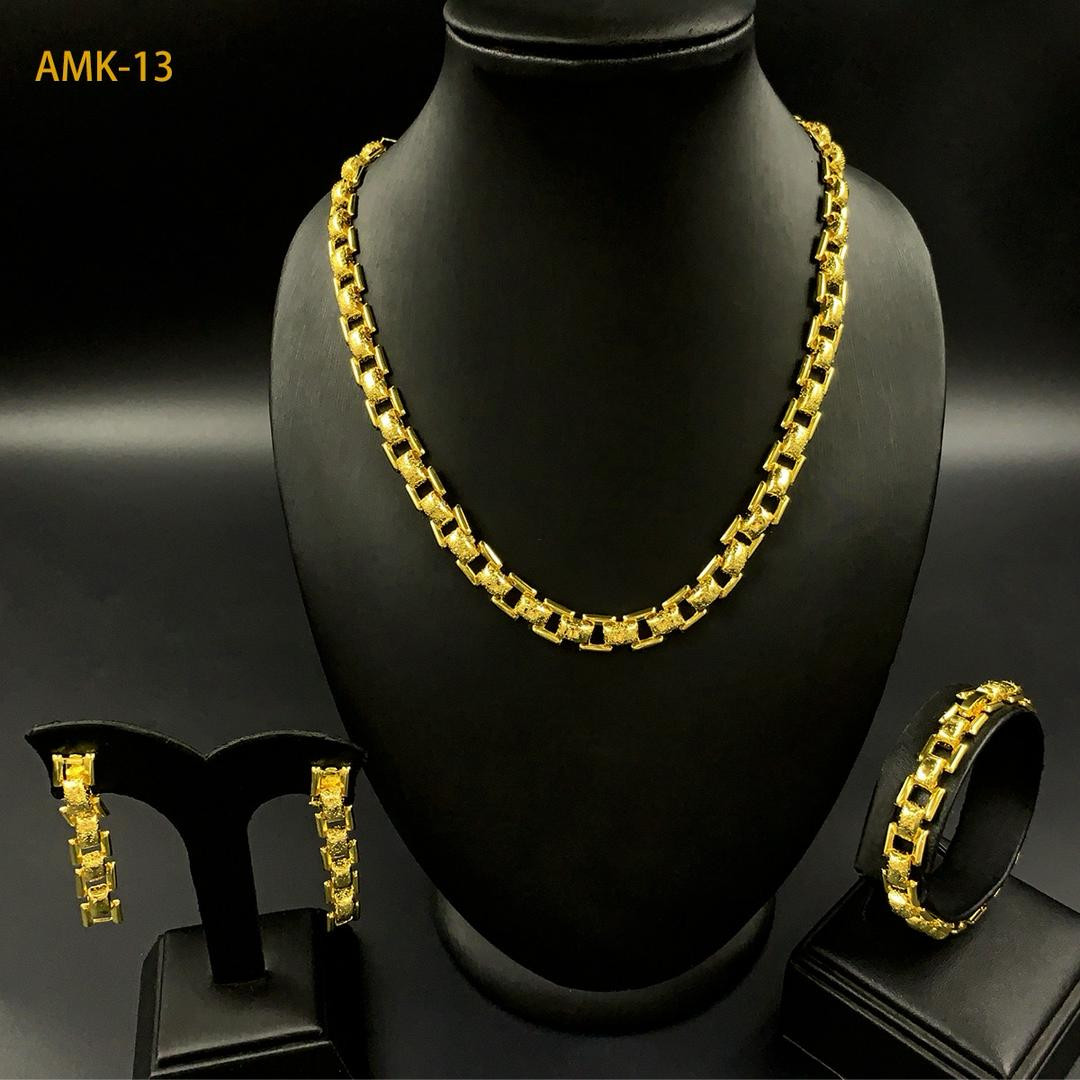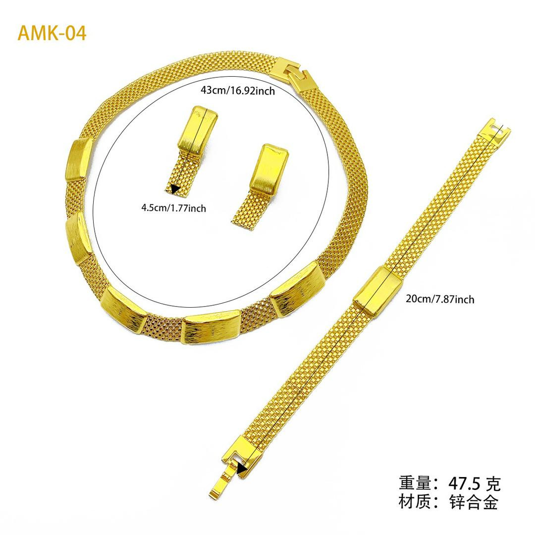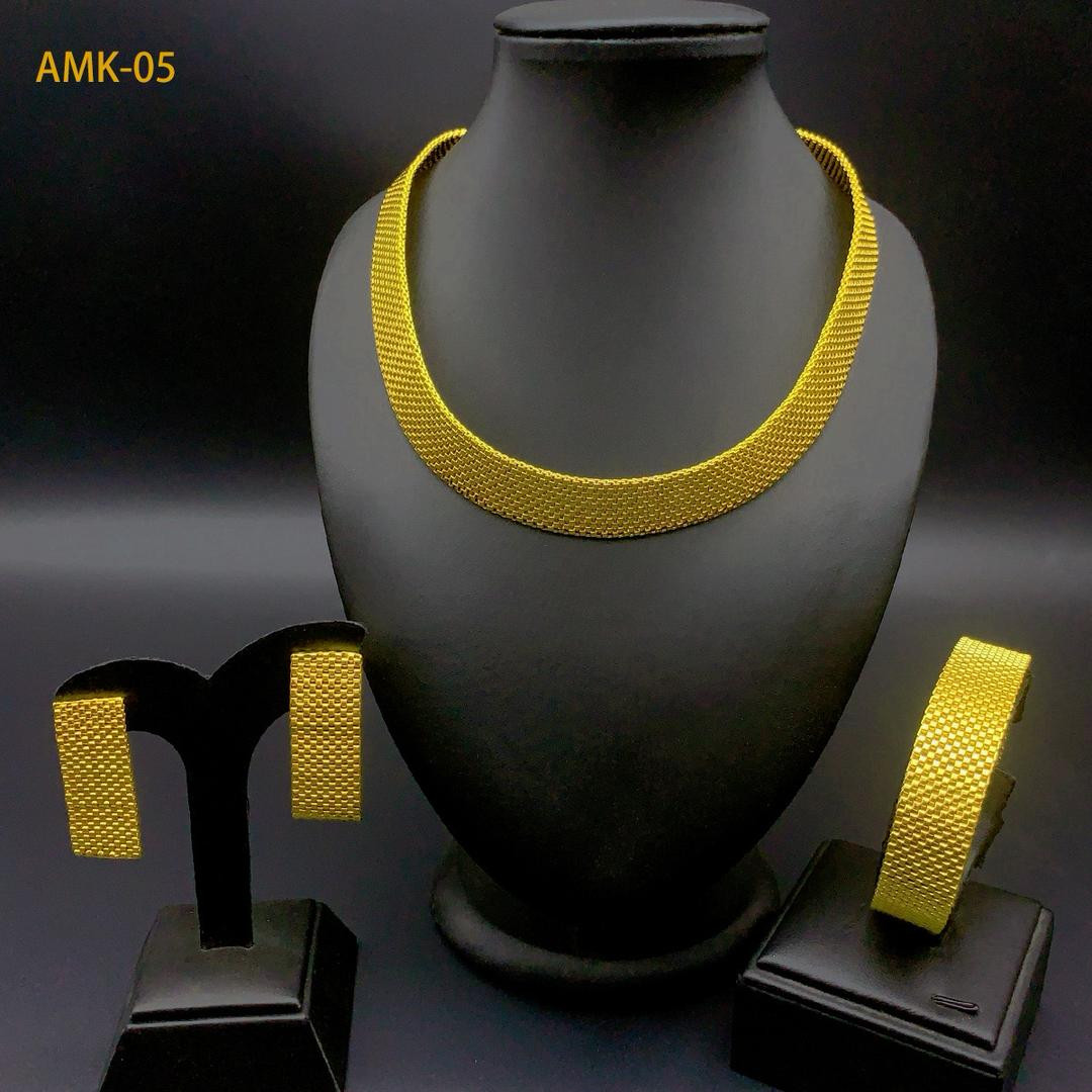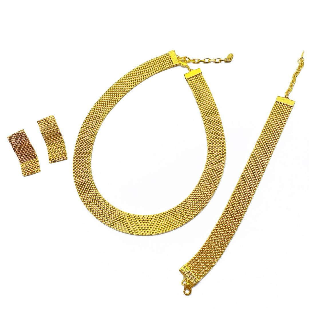 ? طقم مجوهرات فاخر بثلاث قطع بتصميم خليجي راقٍ مستوحى من مجوهرات دبي ✨ يحتوي على سلسلة رقبة ? + سوار يد ? + حلق ? مطلية بلون الذهب اللامع (شبه ذهب عيار 24) تصميم أنيق يناسب العرائس والمناسبات