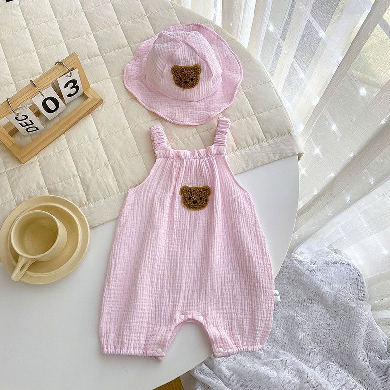 "طقم ملابس صيفي للأطفال مع قبعة دُب
