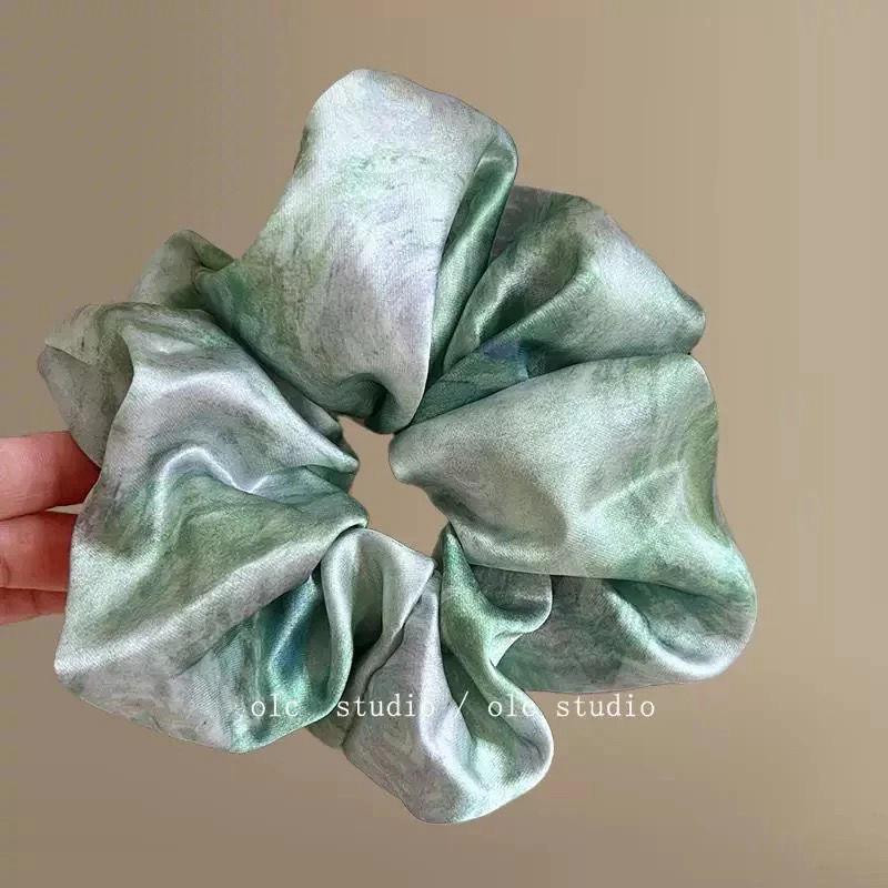 طقم من 4 ربطات شعر بتصميم فني مستوحى من لوحات مونيه الزيتية، بألوان متدرجة ناعمة تمنح مظهراً أنثوياً