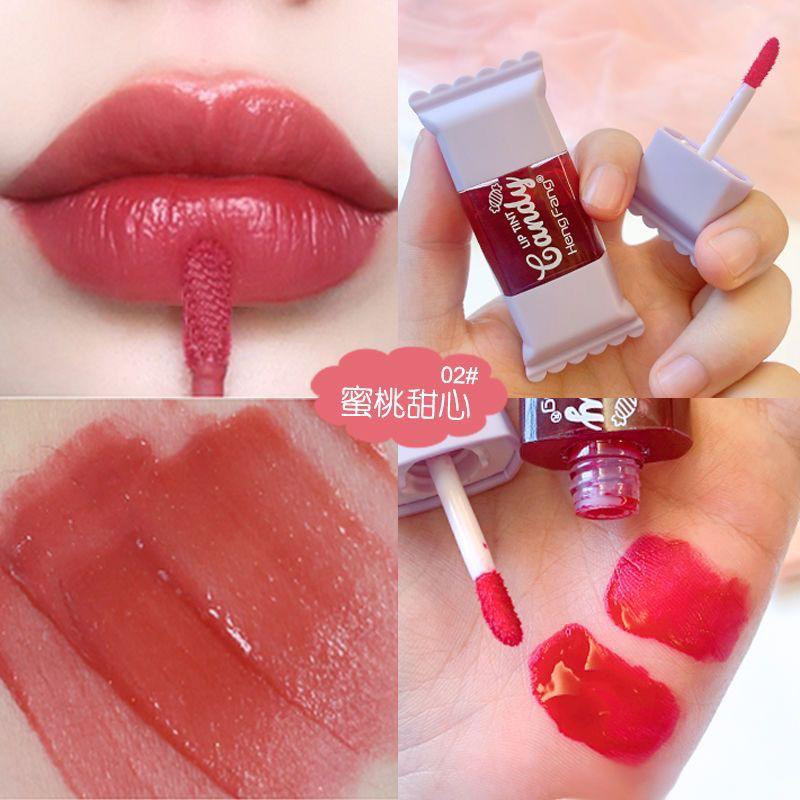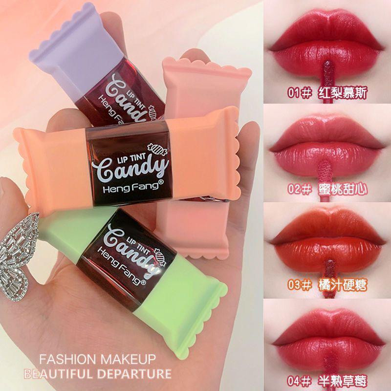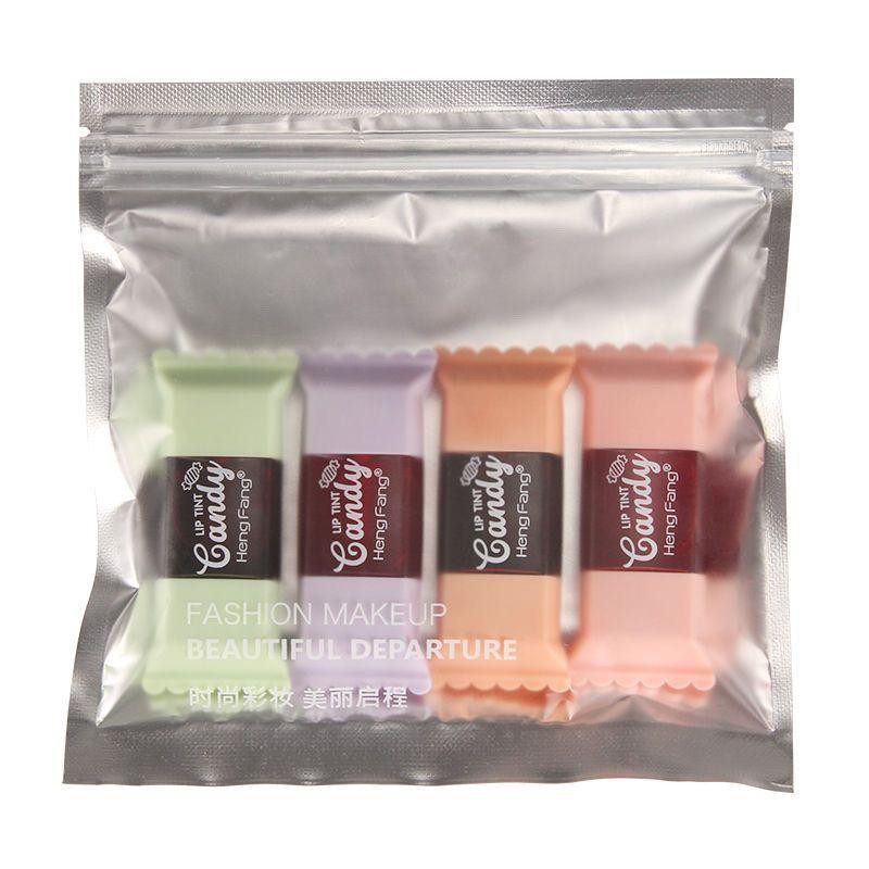 طقم من أربع قطع من أحمر الشفاه اللامع بتصميم عصري بلون الحلوى، تركيبة سائلة لامعة تعكس الإشراق وتمنح الشفاه ترطيبًا وملمسًا ناعمًا