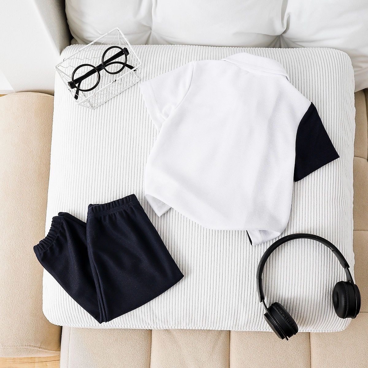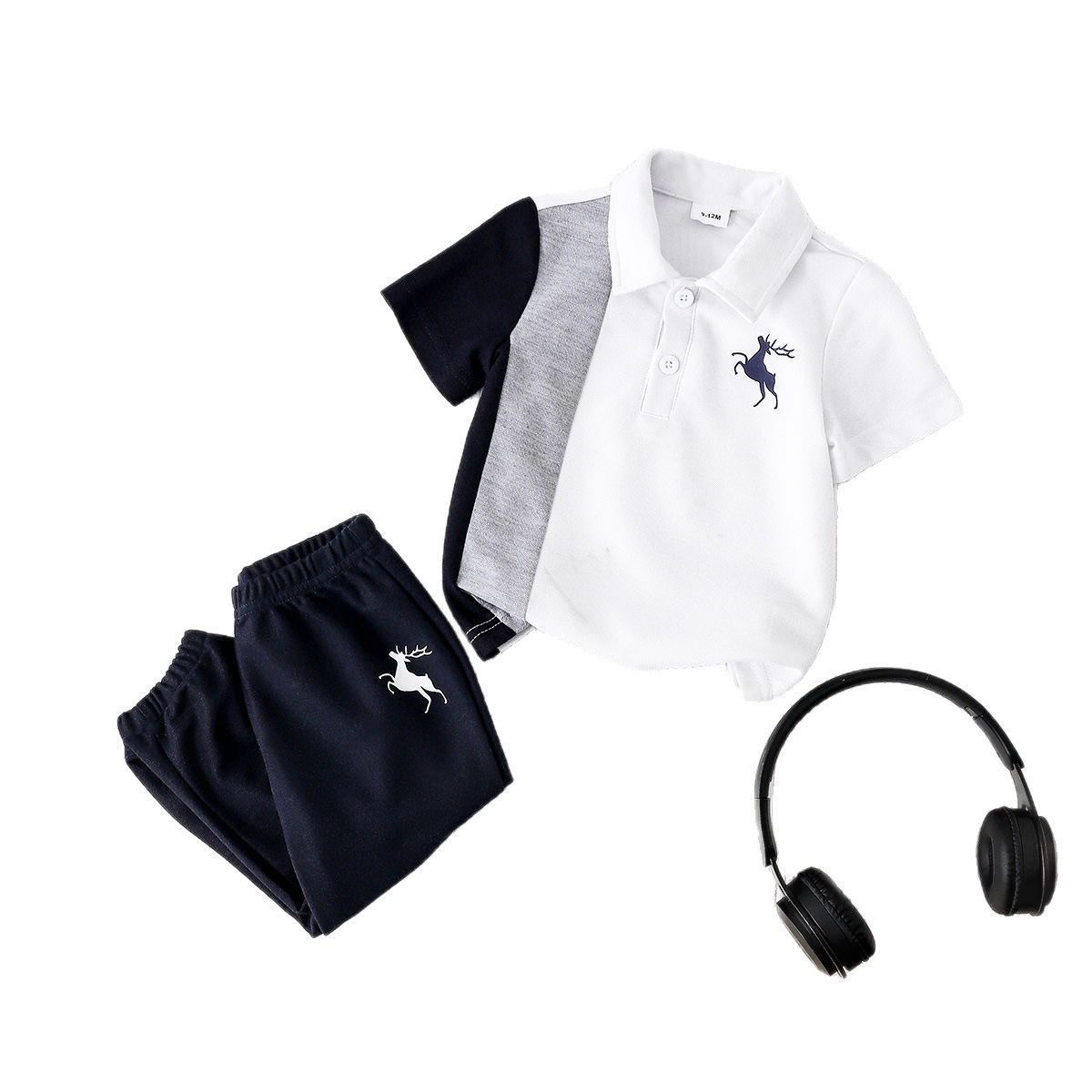 طقم مواليد أولاد رياضي قطعتين – بلوزة بولو مع بنطال اسود