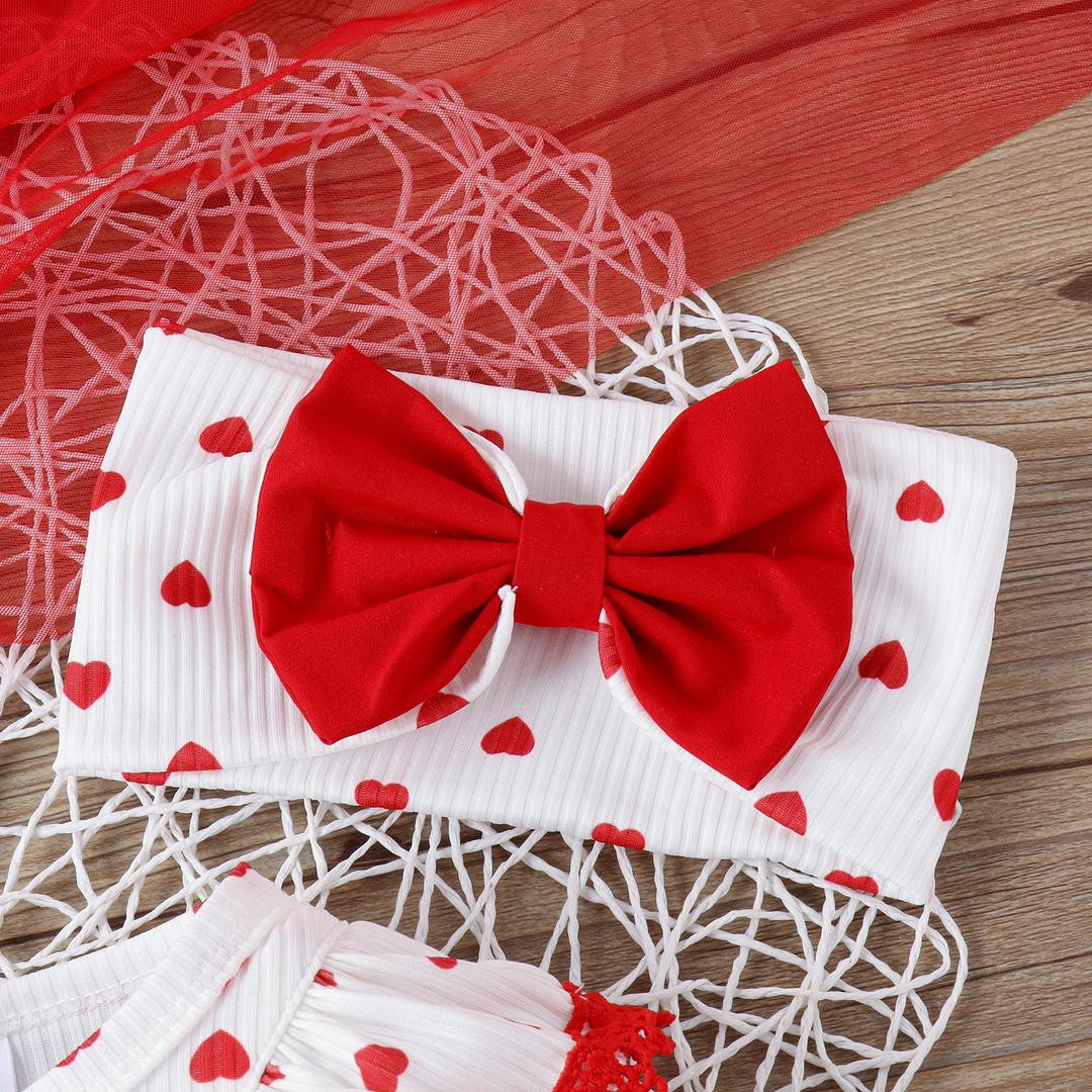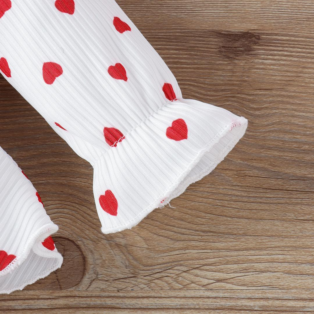 طقم مواليد بناتي شتوي باللون الأبيض مزين بقلوب حمراء مع فيونكة