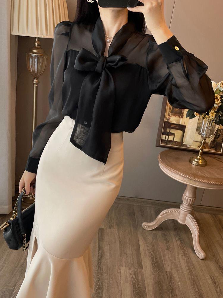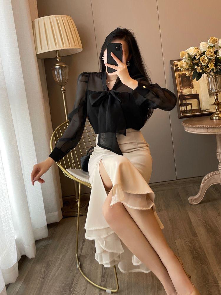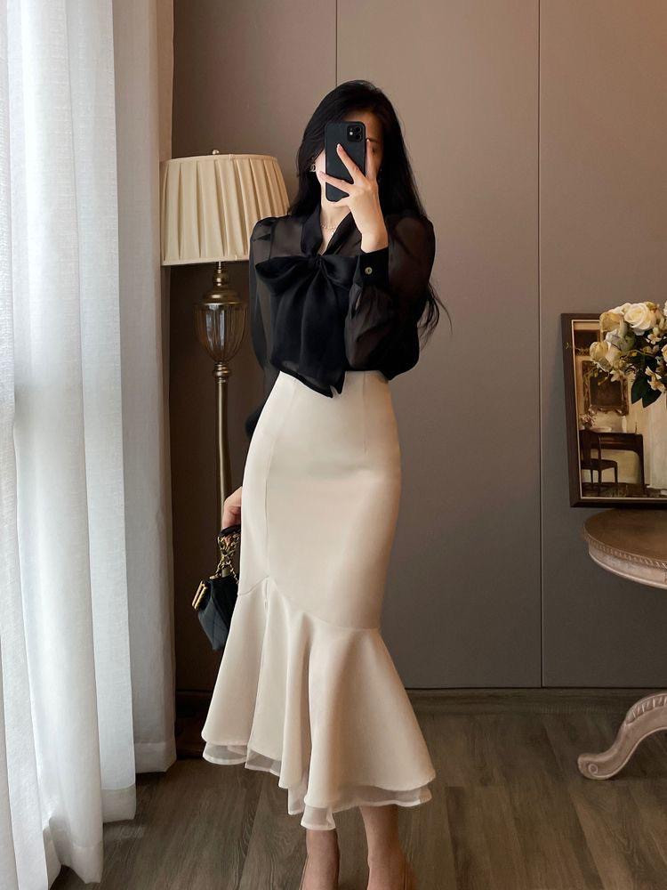 طقم نسائي رسمي (بلوزة شيفون مع تنورة)