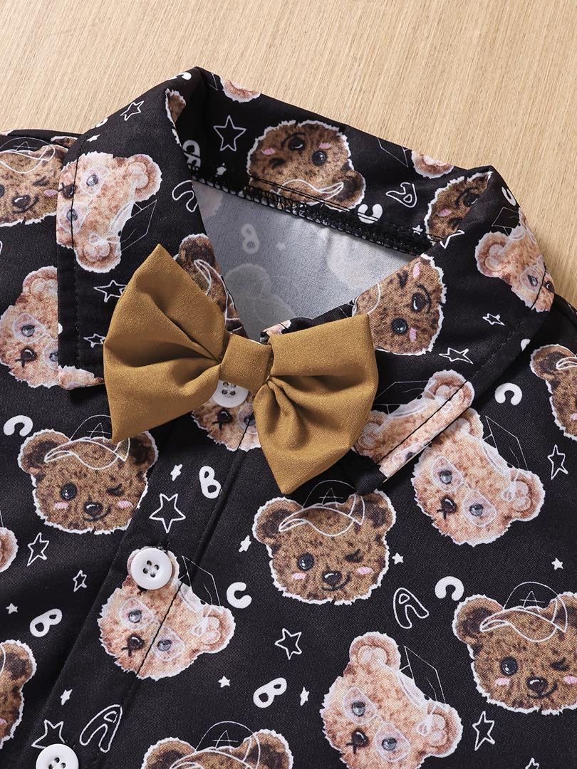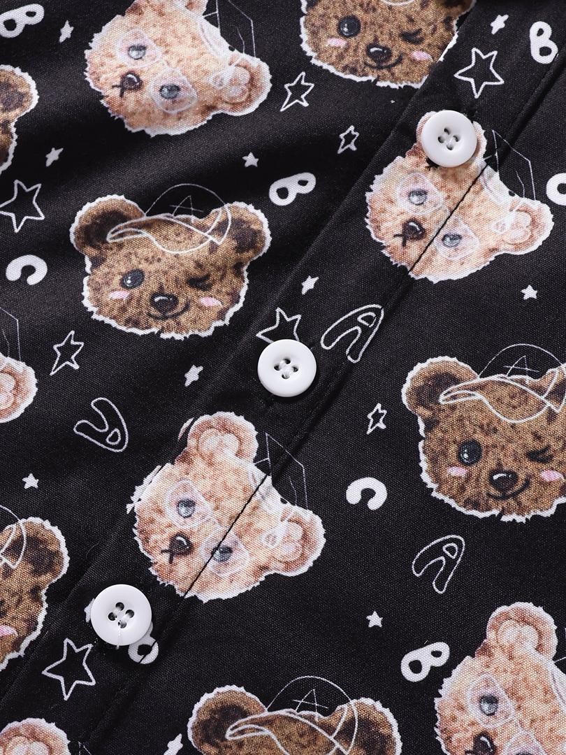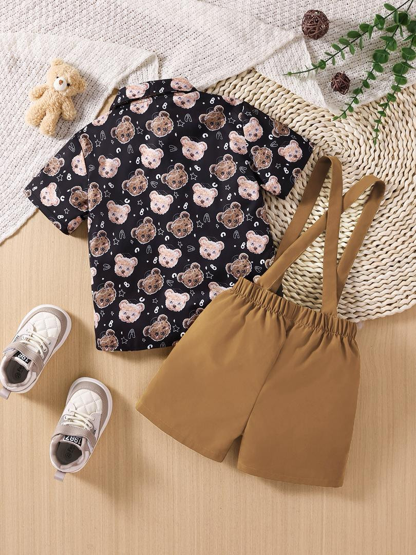 طقم صيفي بطبعة دب قميص قصير الأكمام مع بنطال بحمالات للأولاد