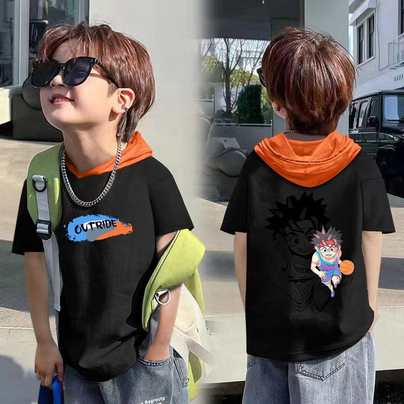 طقم تي شيرت أولاد (بلوزة نص كم بقبعة)