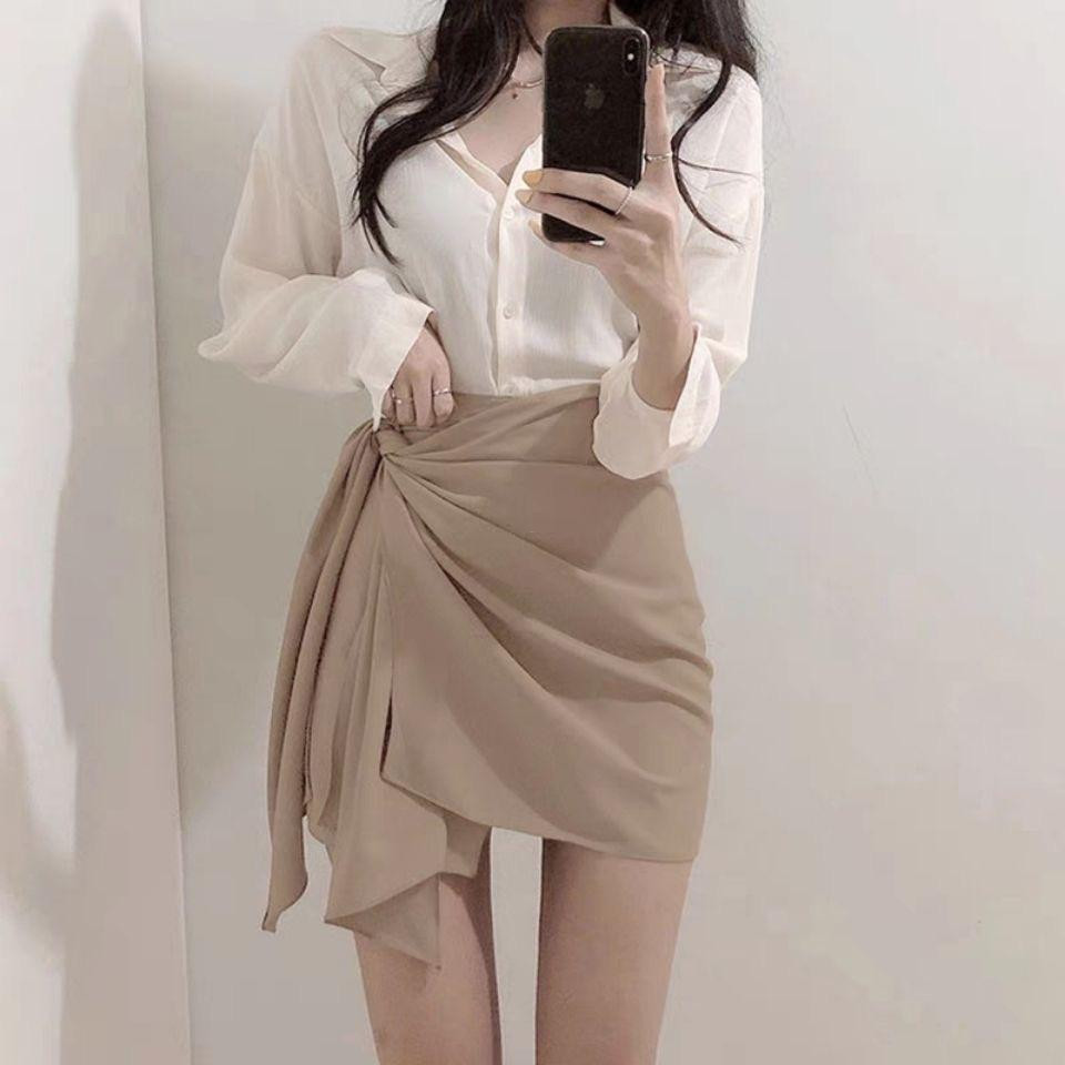 تنورة نسائية راقية، صيف 2025، تصميم غير متماثل، قصيرة عالية الخصر