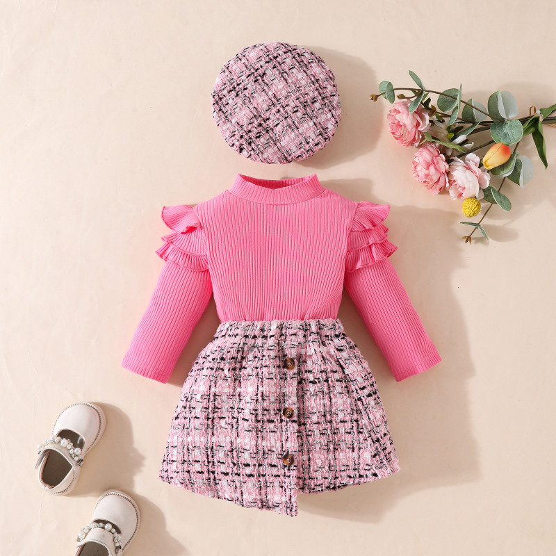 تنورة صغيرة ذات ياقة مدورة مكشكشة وأكمام طويلة للفتيات الصغيرات