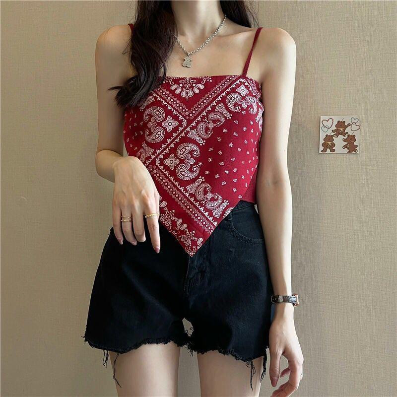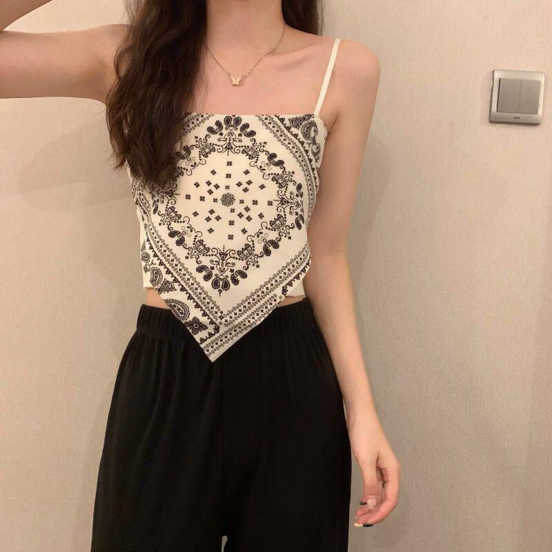توب نسائي ٢ قطع قصير بحمالات رفيعة ستايل