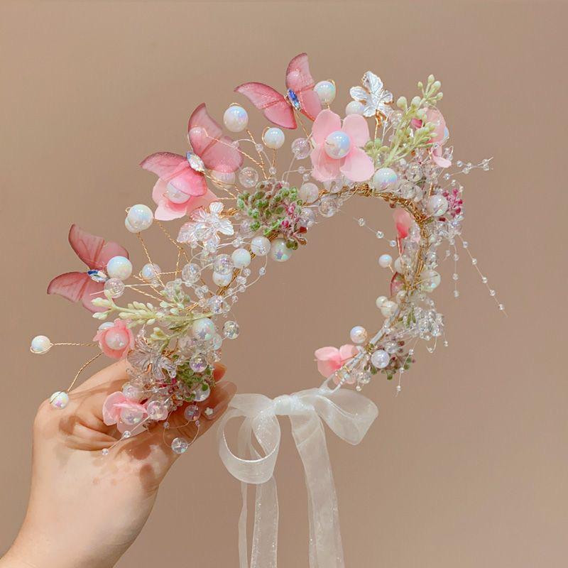 طوق شعر بناتي بزهور ولؤلؤ ستايل غابة ناعم
