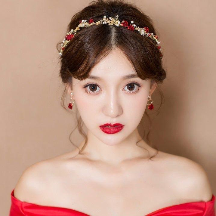 *طوق شعر فاخر مزين بحبات لؤلؤ وورود حمراء*
