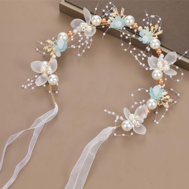 *طوق شعر مزين باللؤلؤ والزهور الشفافة*