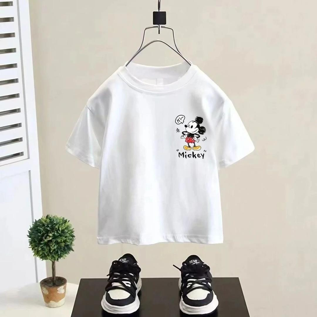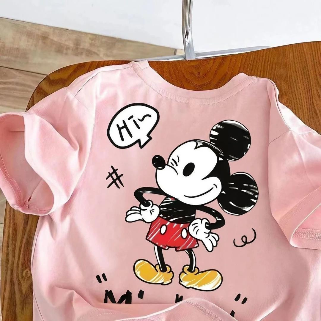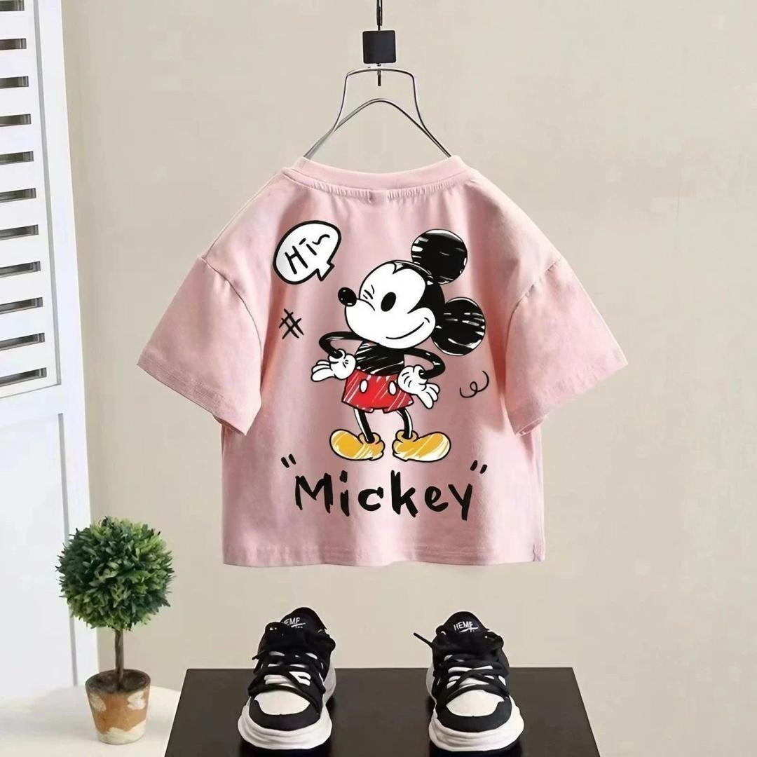 تيشيرت أطفال قطني ميكي وردي قصير كم صيفي