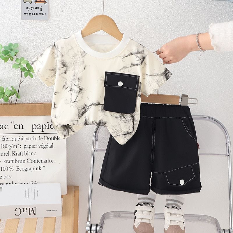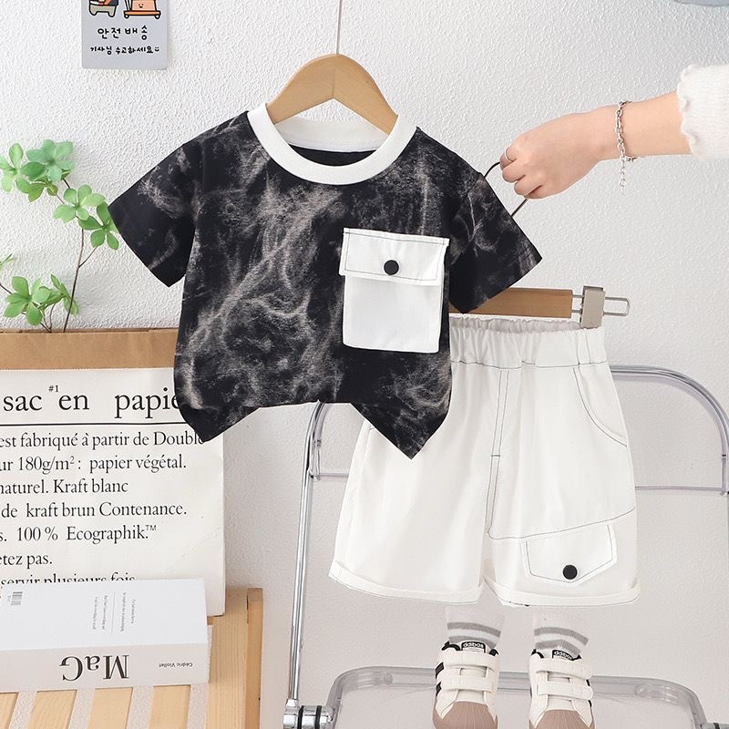 " تيشيرت بألوان متناسقة وبنطلون قصير مع جيب"