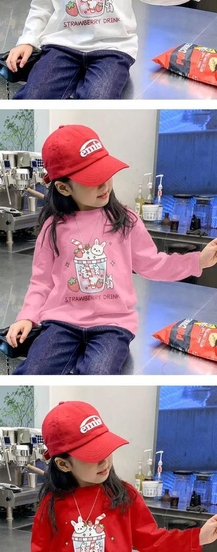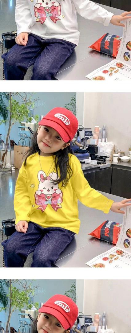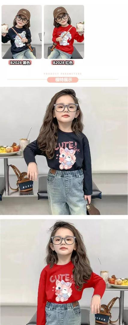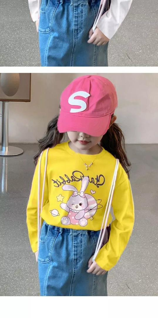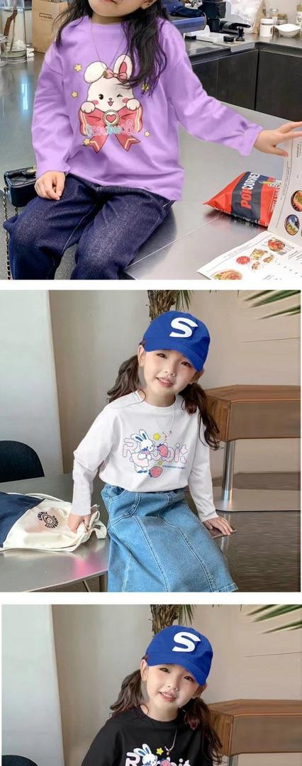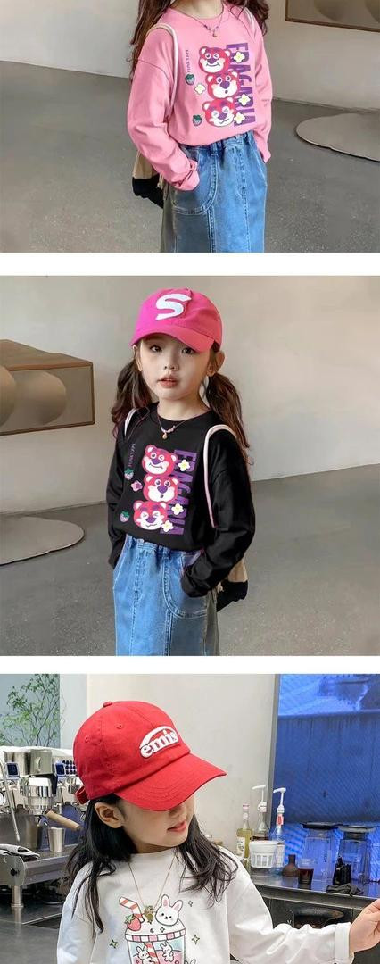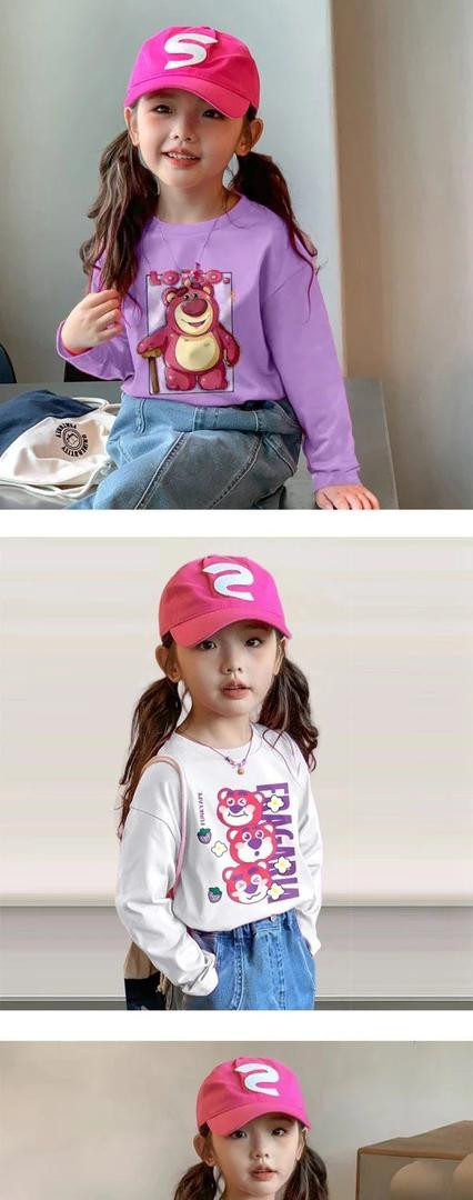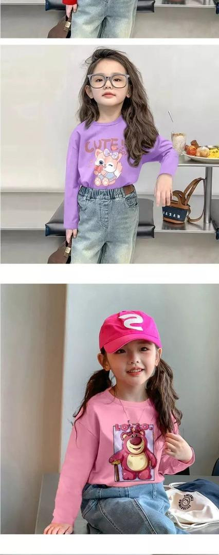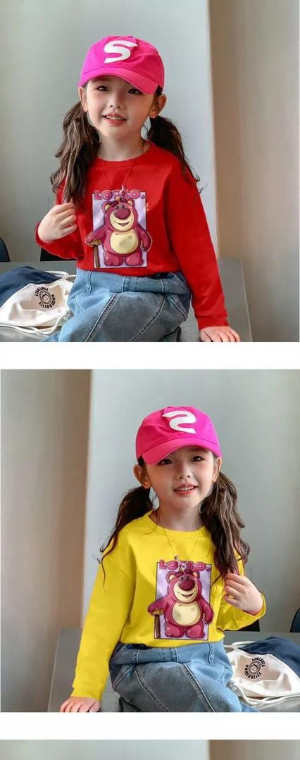 تيشيرت بناتي قطن ناعم بطبعة دب لطيف بتصميم كوري طويل الأكمام (مناسب للخريف والربيع)