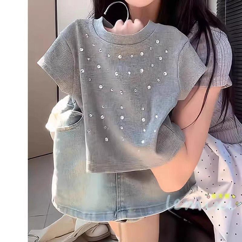 تيشيرت للبنات، تصميم كوري جديد، بأكمام قصيرة،